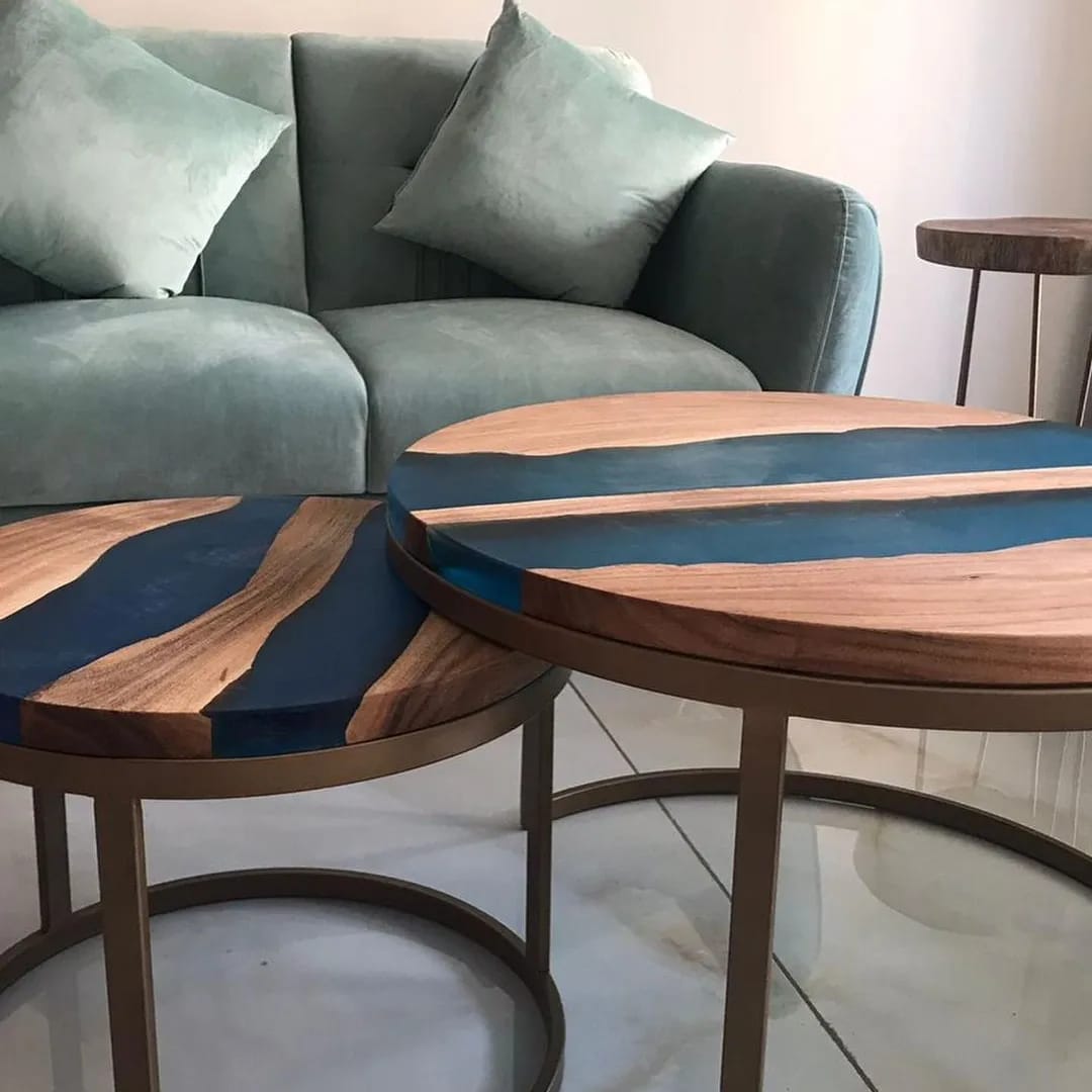 The Resin Nesting Tables boasts superior attention to detail, utilizing premium wood and high-quality epoxy resin. This combination results in a table that is not only durable but also visually stunning. The resin infusion enhances the natural beauty of the wood, providing both protection and aesthetic appeal.