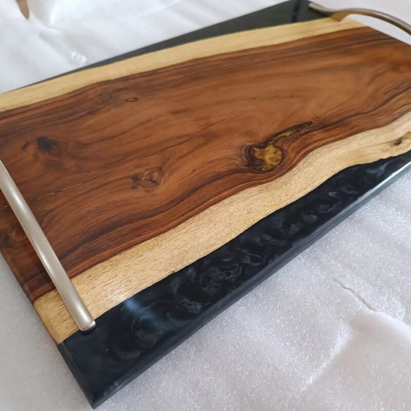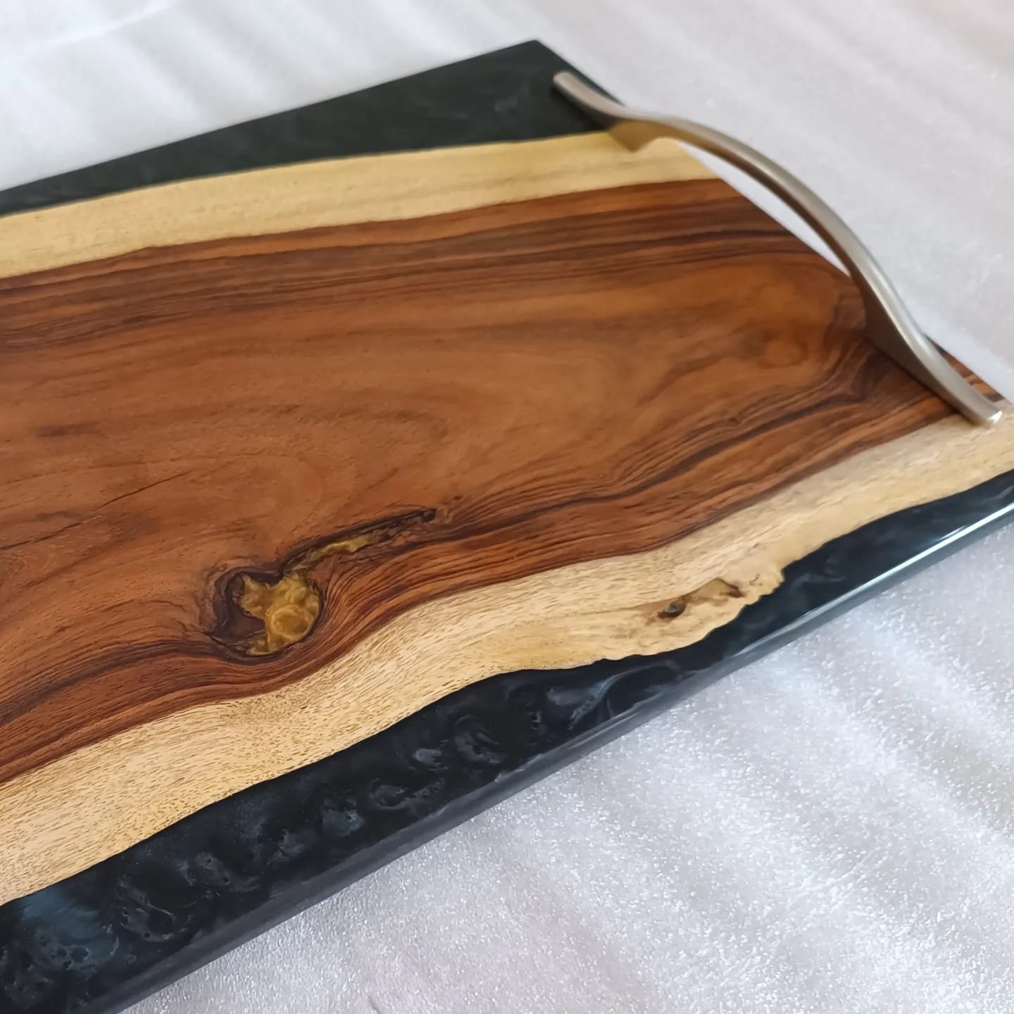 Our resin serving boards are more than just functional pieces; they’re statement pieces. Each board is meticulously handcrafted by skilled artisans who take pride in every detail. The seamless integration of wood and resin creates a stunning visual contrast that adds elegance to any dining table.